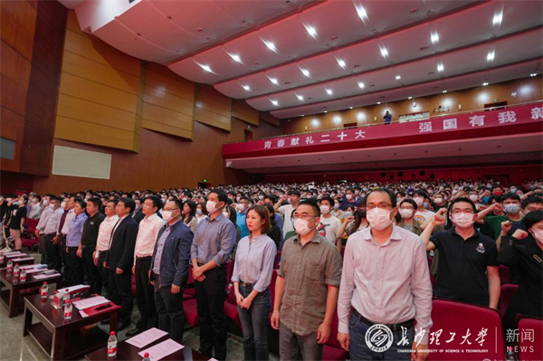 会上,学工部(处)部(处)长邱国良宣读了2022年学生主题教育方案。组织部常务副部长陈曦宣读了《关于表彰优秀个人和先进集体的决定》。大会现场为受表彰的个人和集体代表颁奖。在学生代表蒋利杨的带领下,全场师生“向英雄学习,向前辈学习,向榜样学习;不负人民、不负时代、不负韶华”的铮铮誓言响彻会场。