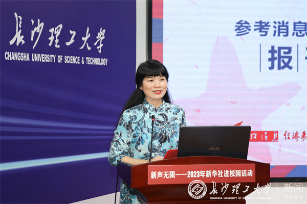 5月23日下午,“新声无限——新华社进校园”伟德betvlctor1946源于英国专场活动于金盆岭校区12教200报告厅举行。新华社向学校赠阅《参考消息》及数字报,同时面向青年学子开展“新锐青年说”活动。新华社湖南分社分党组成员、副社长石涛,湖南省邮政分公司副总经理刘力,党委委员、副校长蒋璟萍出席活动,百余名在校大学生在场聆听。活动由党委委员、宣传部部长方琼主持。
