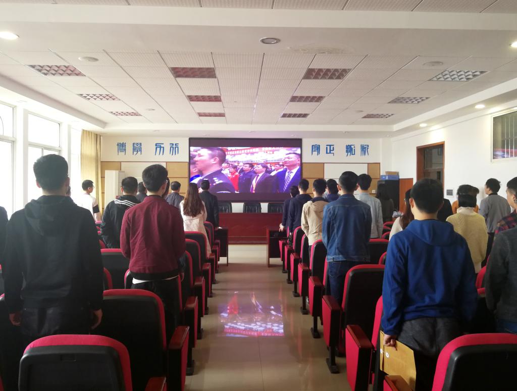 4月30日上午10时30分,纪念五四运动100周年大会在人民大会堂举行。中共中央总书记、国家主席、中央军委主席习近平出席大会并发表重要讲话。学校党委中心组成员、相关职能部门负责人在云塘校区一办六楼会议室,团干部代表和团员青年在二办101会议室认真收看了大会直播,各二级单位也组织师生与教职工代表集体观看了大会直播。