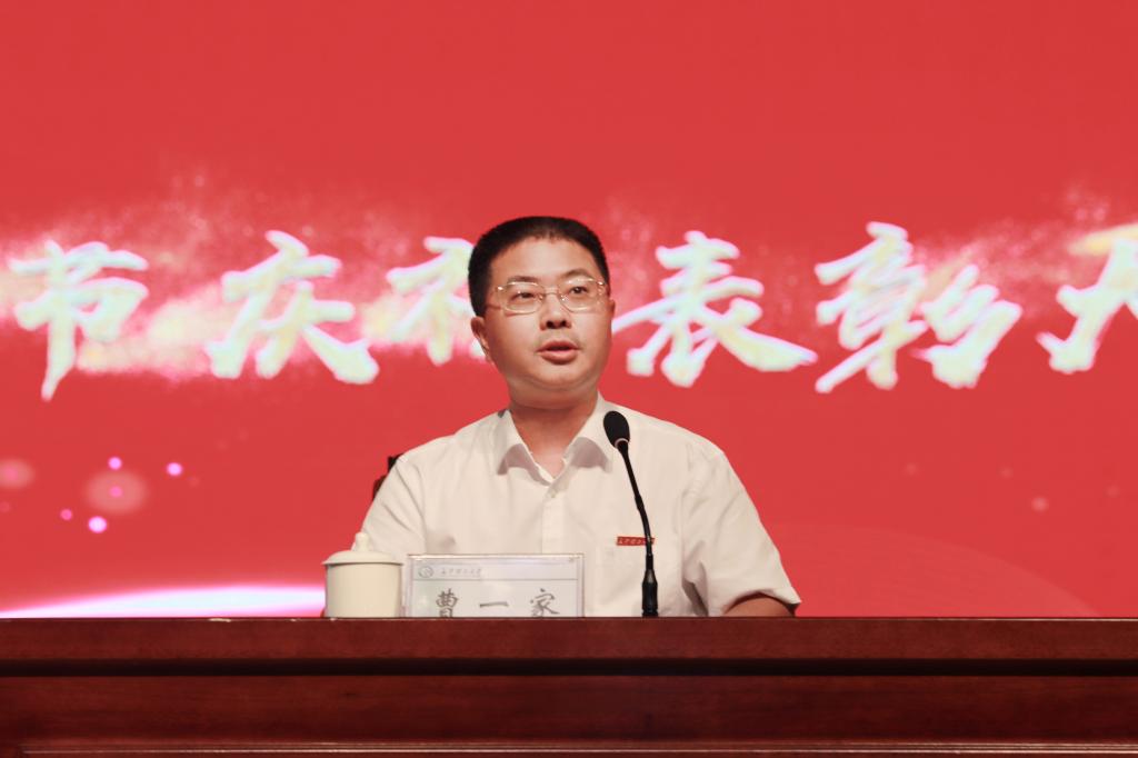 学生代表、经管学院学生彭怡琳献教师节贺词,向老师们表达了由衷的感谢和深情的祝福。教师代表、马克思主义学院李雨燕老师以“用爱和责任铸就师魂”为题在会上发言。她表示,要让学生爱上课堂,不仅要以理服人,还要以情动人,尽力让课堂更精彩,更有吸引力和感染力,不断走进学生心里,触及学生灵魂。教师要以高度的责任感和使命感,在学生心中埋下真善美的种子,引导学生系好第一粒扣子。