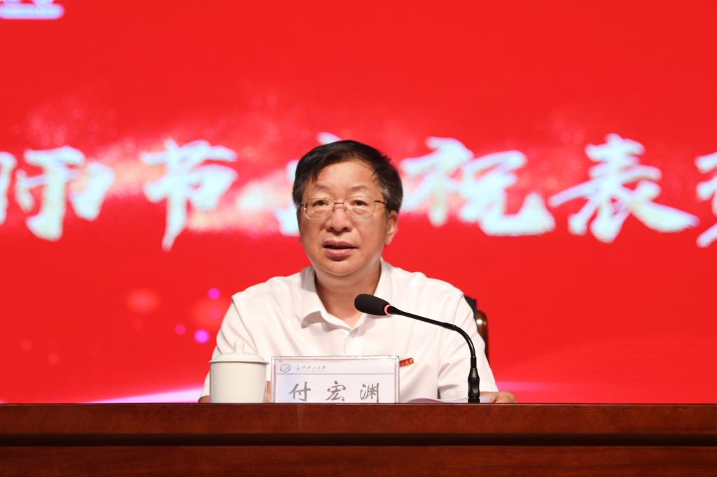 付宏渊在讲话中向全校教职工致以节日的问候。他表示,一年来,学校坚持改革创新,强化内涵发展,全面提升办学质量,在“双一流”、“百强”大学建设的征程上迈出了更加坚实的步伐。学校改革发展成绩令人振奋,教师立德树人表现令人感动,教师奋进担当作为让人期待。