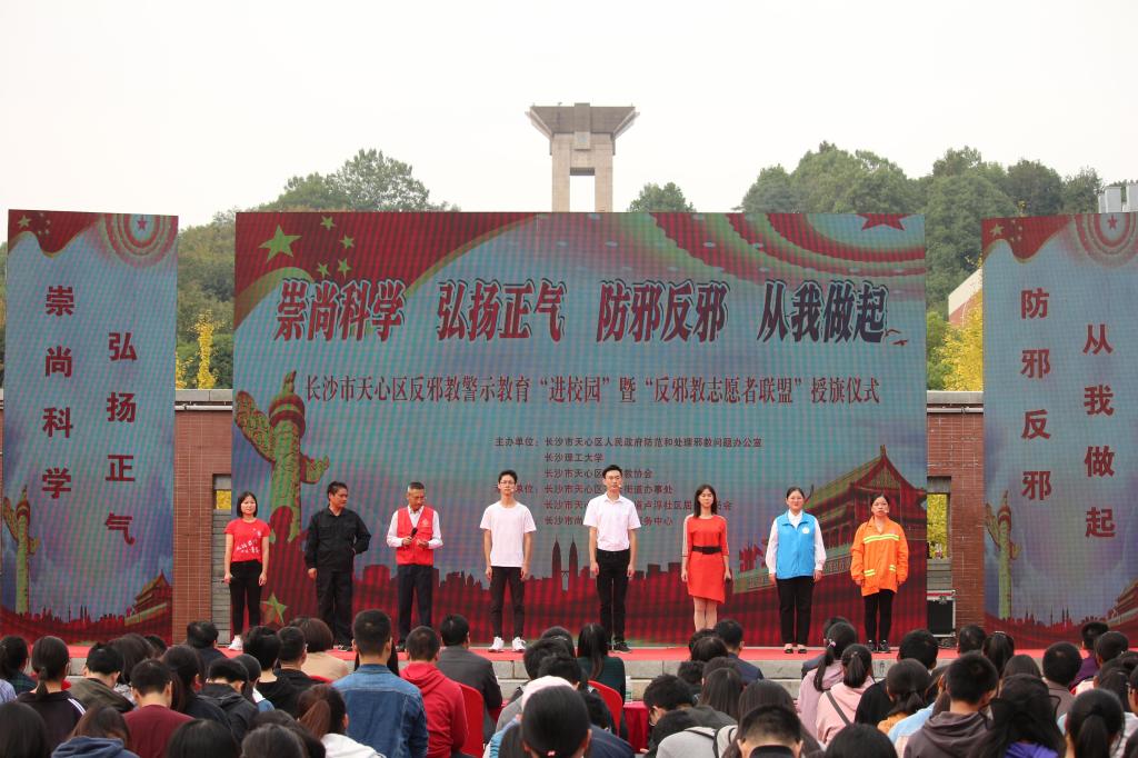10月23日,天心区反邪教警示教育“进校园”暨“反邪教志愿者联盟”授旗仪式活动在伟德云塘校区文化广场举行。长沙市防范办、长沙市反邪教协会、天心区政法委、天心区防范办、天心区反邪教协会和天心区暮云街道的相关领导、部分师生、居民群众等近3000人参加了此次活动。校党委委员付嫦娥,校党委委员、宣传部部长方琼出席。