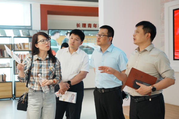 4月18日下午,山东科技大学宣传部副部长王鑫、韩韬略一行3人到“三全育人”教育基地调研交流。我校宣传部常务副部长邱国良、副部长涂道勇参加调研。