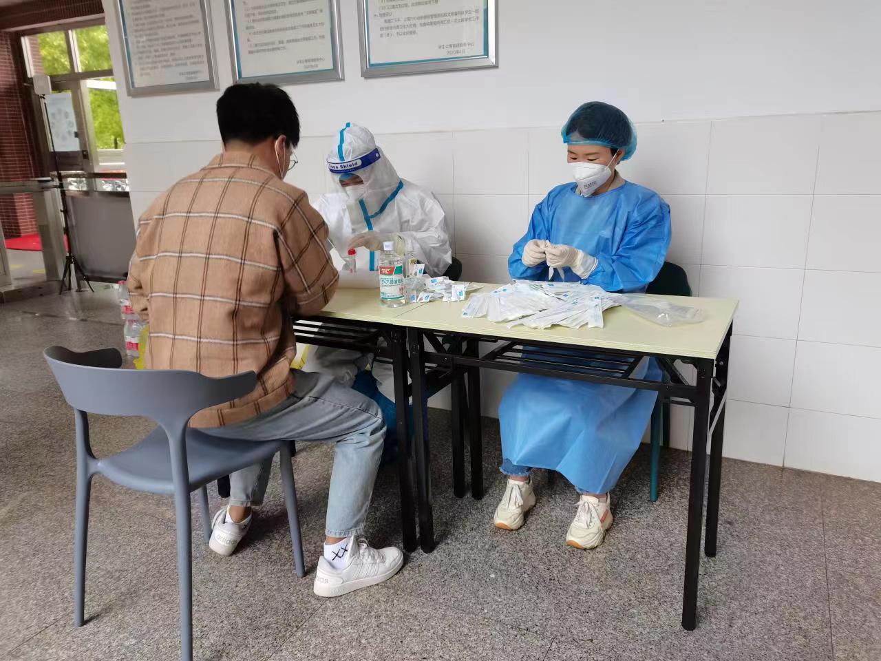 刘燕妮同志在学生宿舍组织学生进行核酸检测