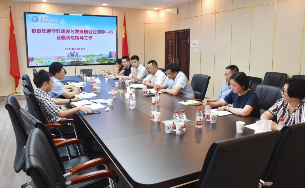 6月17日上午,学校学科建设与发展规划处处长王宏,副处长赵冰、张拥华一行来我院走访调研。学院党委书记成华、院长陈荐及班子成员参加调研座谈。