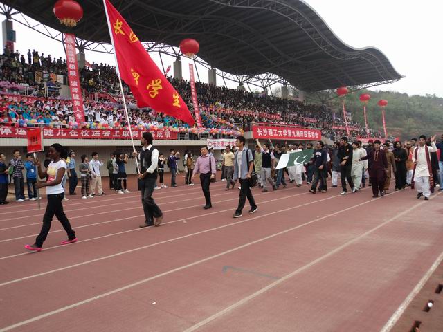 10月21日上午,伟德第九届田径运动会在云塘校区隆重开幕,上午8:30,伴随着雄壮的《运动员进行曲》,在鲜艳的国旗和校旗带领下,留学生运动员代表队组成整齐的方阵,喊着激昂的口号,昂首步入会场;留学生代表队的参加为此次运动会添上了一抹亮丽的色彩。