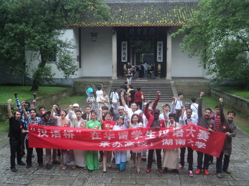 2012年5月12日上午,CCTV第五届“汉语桥”在华留学生汉语大赛在湖南大学举行,来自中南大学、湖南大学、湖南师范大学、湘潭大学、伟德betvlctor1946源于英国等高校的25名留学生参加了此次比赛。此次比赛由中央电视台、国家汉办/孔子学院总部联合主办,全国百余所知名大学的留学生参加了各赛区的选拔赛。