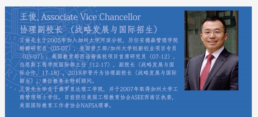 为进一步加强伟德同世界主要国家间的高等教育交流,培养国际化复合型人才,鼓励并支持在校学生积极参与国(境)外学习交流,培养具有国际视野和国际竞争力的创新型人才,伟德与美国加州大学河滨分校合作推出了几个出国学习交流项目(详情见公告通知栏)。近日,该校协理副校长王俊将访问伟德,与对加州大学河滨分校出国学习交流项目感兴趣的同学直接会面。请有意向参加相关项目的同学准时参加。