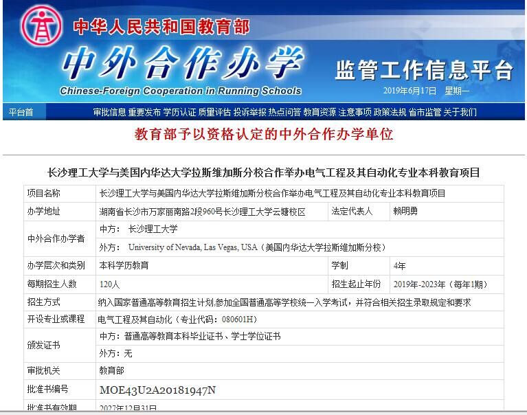 伟德betvlctor1946源于英国与美国内华达大学拉斯维加斯分校合作举办电气工程及其自动化专业本科教育项目于2018年获得教育部批准(编号:MOE43U2A20181947N),融合两校强势专业“电气工程”之优势,严格遵守《中外合作办学条例》和《中外合作办学条例实施办法》办学,紧密依托国际化、专业化的高水平管理团队运行。该项目融合中美双方优质教育资源,精心打造人才培养方案,其中1/3以上核心课程采用美方原版教材、师资、教学方式等优质教育资源,培养兼具国际化视野与家国情怀、拥有创新精神和跨文化交际能力、系统掌握电气工程专业基础理论知识和现代工程技术、具备良好科学素养与工程实践能力的应用型高级专门人才。