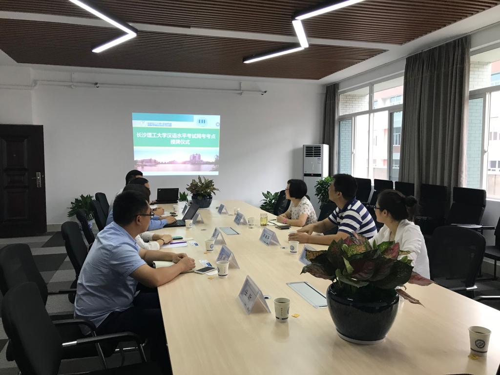 5月30日上午10时,湖南省首个高校汉语水平考试伟德betvlctor1946源于英国网考考点授牌仪式在伟德betvlctor1946源于英国国际学院会议室隆重举行。国家汉办汉考国际教育科技(北京)有限公司技术部经理李群峰、市场部项目负责人杨凯、李盼、技术部网考专员董彬、国际学院院长陈瑜、学院党委副书记兼副院长吴振华、学院大学生学习与发展中心全体老师参加。