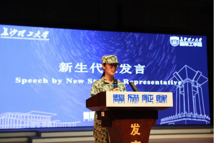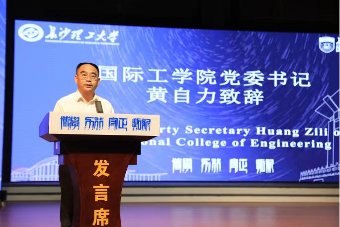 开学典礼在激昂的国歌声中拉开帷幕。首先,国际工学院党委书记黄自力致辞。他对新生提出希冀:要坚定理想信念,厚植爱国情怀,锤炼知识本领,牢记明德修身,践行知行合一。并预祝新生在大学中感受成长、感动、快乐、美好,做一个热爱生活、有韧性的追梦人!