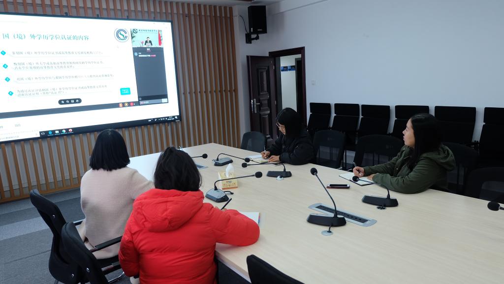 为贯彻落实《关于做好新时期教育对外开放工作的若干意见》精神,配合教育部进一步规范和管理中外合作办学及其他涉外办学形式,教育部留学服务中心于2019年11月28日下午1:50-3:30通过网络视频直播方式举办了“中外合作办学学生注册与认证系统培训会”。国际学院中外合作办学项目教务办全体老师在新能源1栋416会议室集体参与了此次培训。