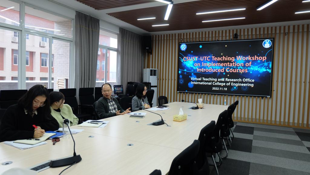 11月18日上午,中外合作办学项目(土木工程专业)国际化课程虚拟教研室在新能源1栋416会议室顺利举行了中外合作办学教学专题研讨会。国际工学院副院长兼虚拟教研室建设负责人秦卫星、创始成员美国田纳西大学查塔努加分校土木工程系Ignatius Fomunung、Mbaki Onyango、Weidong Wu,伟德betvlctor1946源于英国戴全发、余志、李稀,以及国际工学院教务办全体老师参加了本次会议。