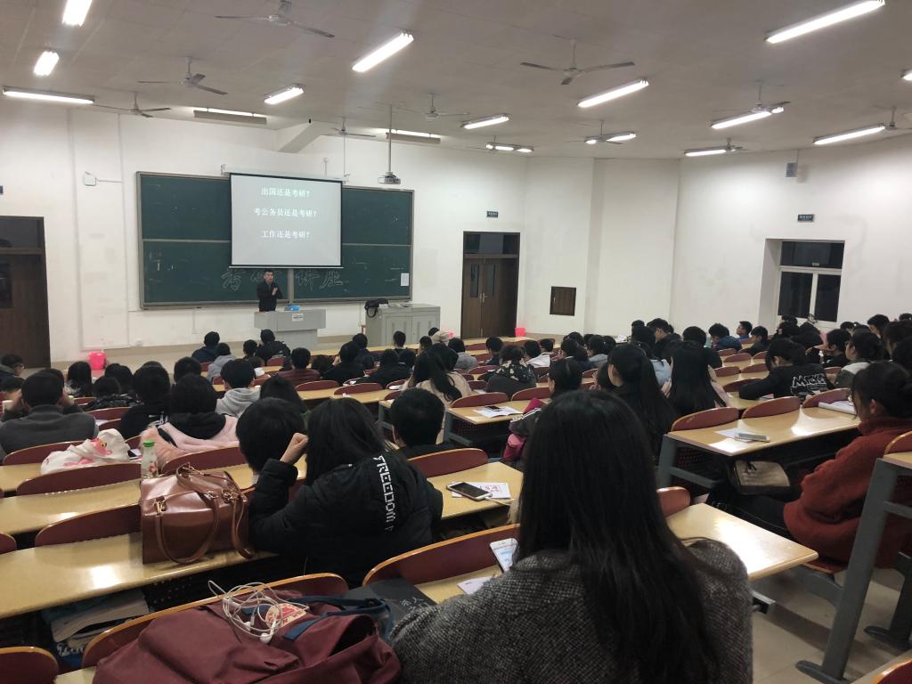 为消除大学生考研的焦虑,增强其考研的信心,提高其对考研的综合性认识,国际学院大学生学习与发展中心于3月22日晚在综合教学楼B102邀请长沙新东方国内部副总监胡彦博老师举办考研规划讲座,为伟德betvlctor1946源于英国学子送来考研的春风雨露。国际学院和其他学院共200多名学生参加了此次讲座。