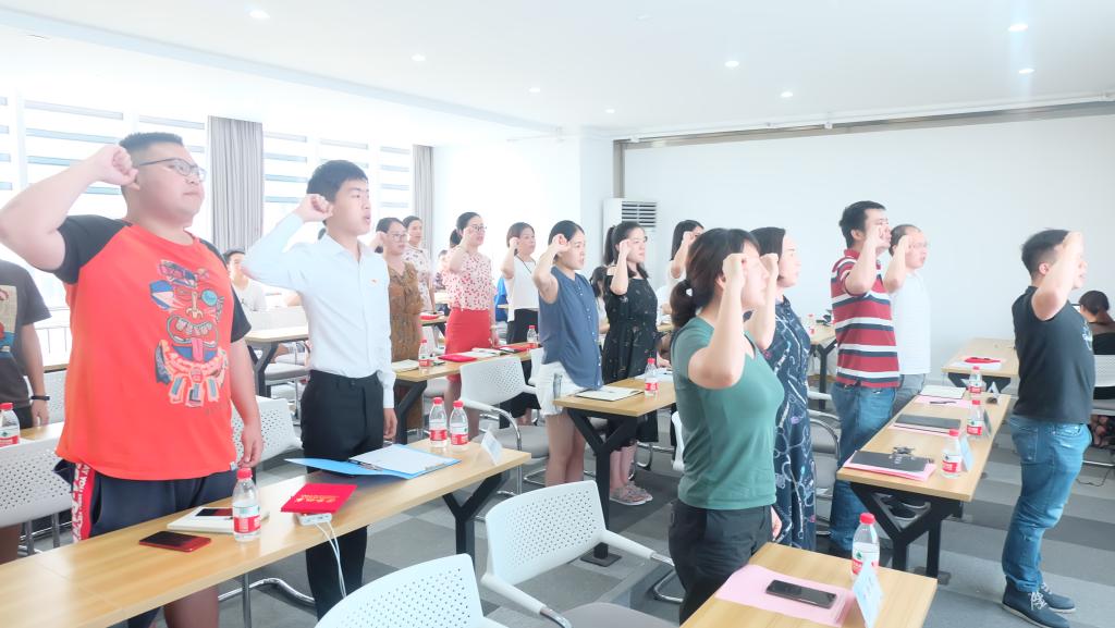 全体师生党员在“优秀党员”荣誉获得者王荟惠的带领下重温入党誓词并观看伟德先进党员专题宣传片《坚守》。