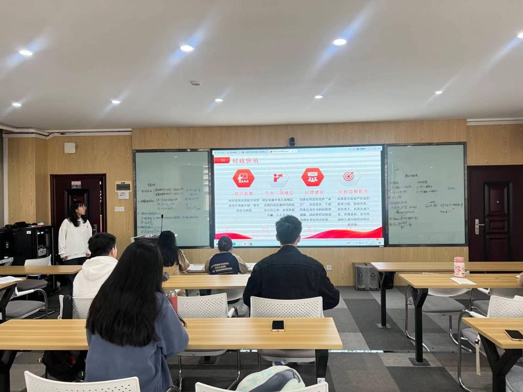 各党支部书记在本月主题党日活动中认真总结,强调新时代加强廉洁文化建设的重要性,要求全体学生党员提高廉洁意识,自我向廉,认真践行诚信考试承诺,做到廉洁诚信时刻在线。