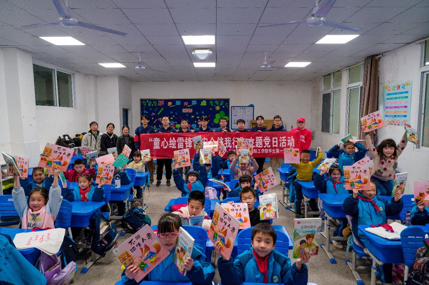 学生党员哥哥姐姐们为每位小朋友赠送了精心编印的安全教育和雷锋精神绘本,这些绘本图文并茂,生动有趣,旨在引导孩子们在阅读中增长知识,培养安全意识,同时深刻理解并传承雷锋精神。小朋友们翻阅着绘本,眼中闪烁着兴奋与好奇的光芒,仿佛看到了自己成为小小雷锋的模样,心中种下了爱与奉献的种子。