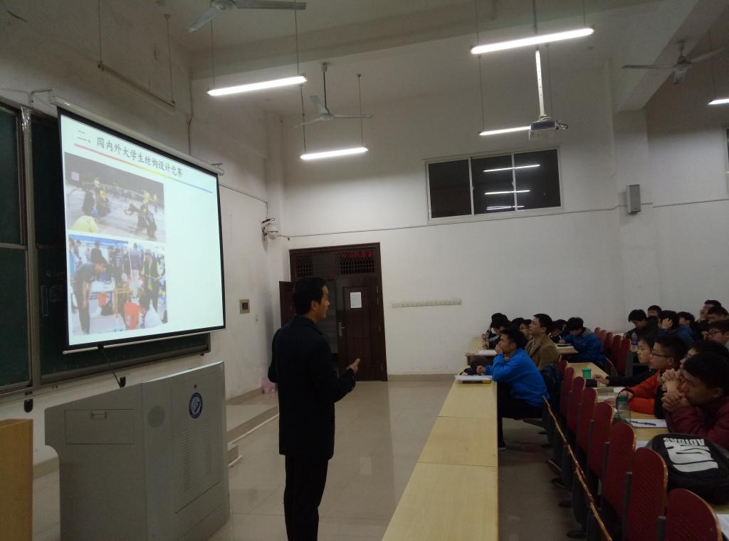 最后,付果博士鼓励同学们参与到学校大学生结构设计竞赛团队,不断提高自己的理论和实践能力。通过本次讲座,同学们均感觉非常震撼,并纷纷表现出极大的参与学科竞赛的兴趣。