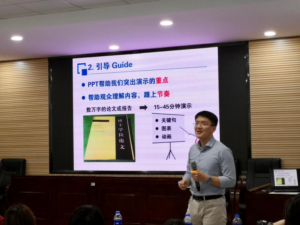 活动的第二阶段学院青马班的业务培训,针对学生在开展工作汇报中的问题,张锐为学员作“如何做好PPT及汇报”的专题报告。张锐结合自己丰富的工作汇报经验,从PPT制作的要求、如何设计PPT与讲解PPT等方面展开,分享了多个中英文PPT汇报案例,生动讲解了制作PPT,辅助好工作汇报,在最后的互动环节中,现场解答了学生们在制作PPT工作汇报中的疑问。