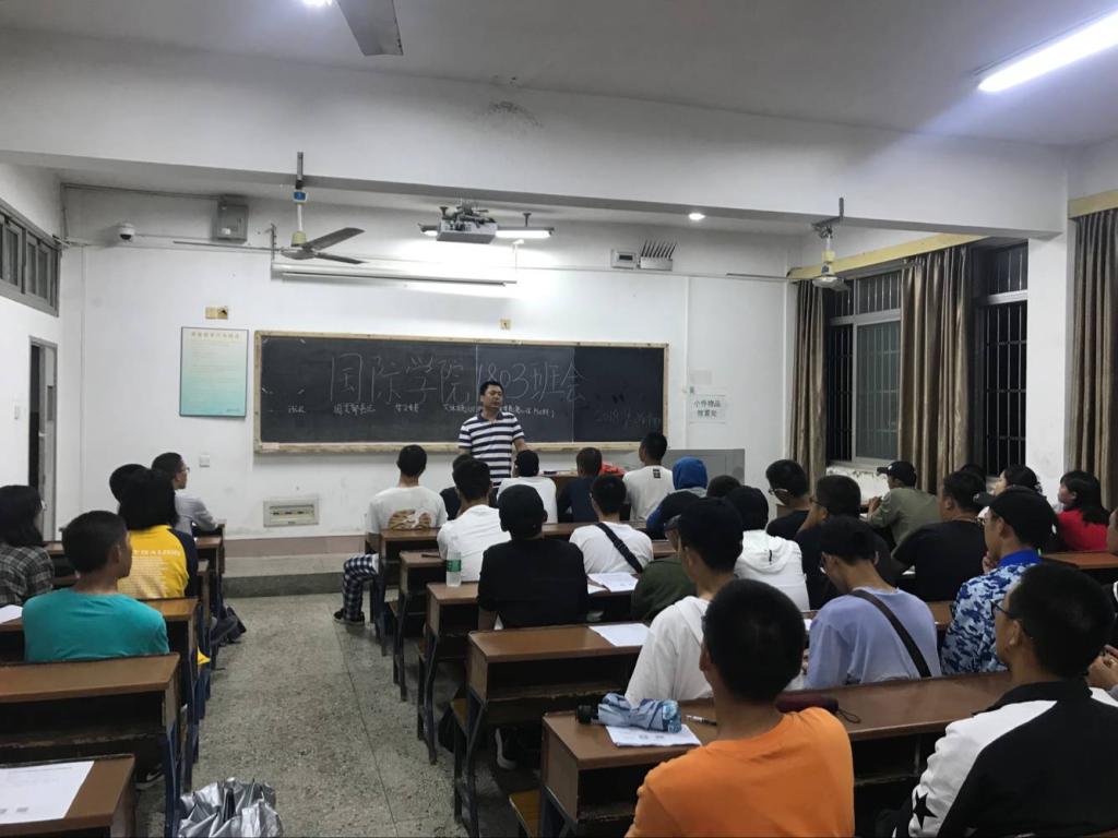 9月24日晚上7点,国际学院2018级新生第二次班会分别在金盆岭校区12教205、206、208教室顺利举行。校党委委员、国际学院党总支书记付嫦娥,副书记吴振华和2018级新生辅导员唐宏敏分别担任3个新生班级班主任,主持并参加了此次班会。此次班会主要围绕入学教育和班委选举展开。