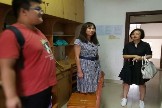 9月10日是一年一度的教师节,也是国际学院2017级新生报到的日子。这天下午,校党委委员、院党委书记付嫦娥、院长陈瑜、副书记吴振华、院长助理秦卫星在辅导员刘森峙的陪同下深入宿舍亲切看望新生和家长。