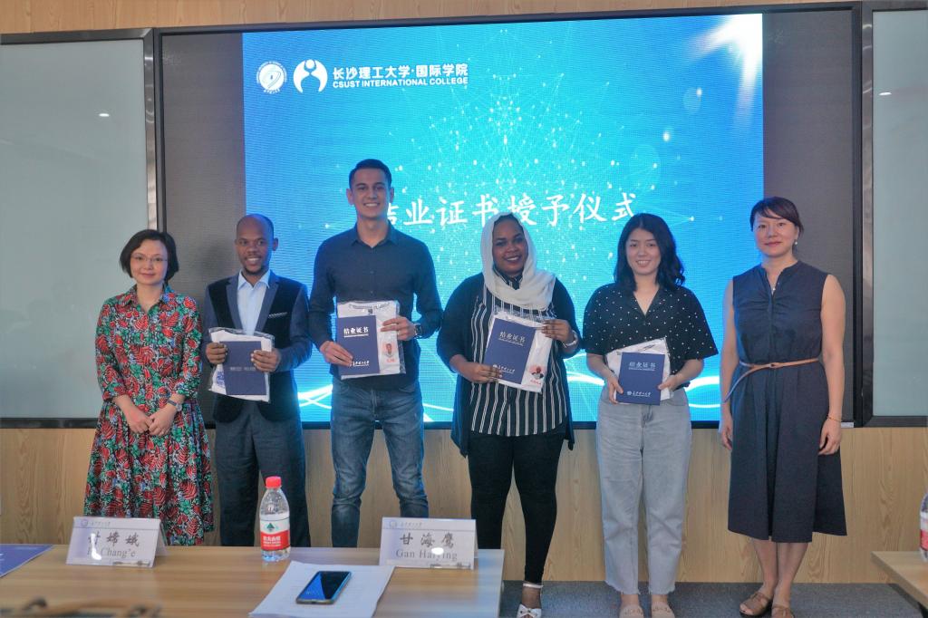 随后,甘海鹰宣读了《关于表彰2019届国际学生优秀结业生的决定》,陈瑜为五名优秀结业生颁发证书和纪念品。多哥籍优秀结业生安妮代表全体结业生发言,她总结了在华学习一年的收获,表达了对伟德betvlctor1946源于英国和老师们的感谢,并向全体结业生呼吁,要继续加强知识技能和道德修养,向更高的目标迈进。最后,陈瑜、甘海鹰为包括“孔子学院奖学金生”、“湖南省一带一路奖学金生”在内的24名结业语言生,以及5名结束汉语补习阶段的学历生颁发结业证书,并向结业语言生赠纪念T恤。