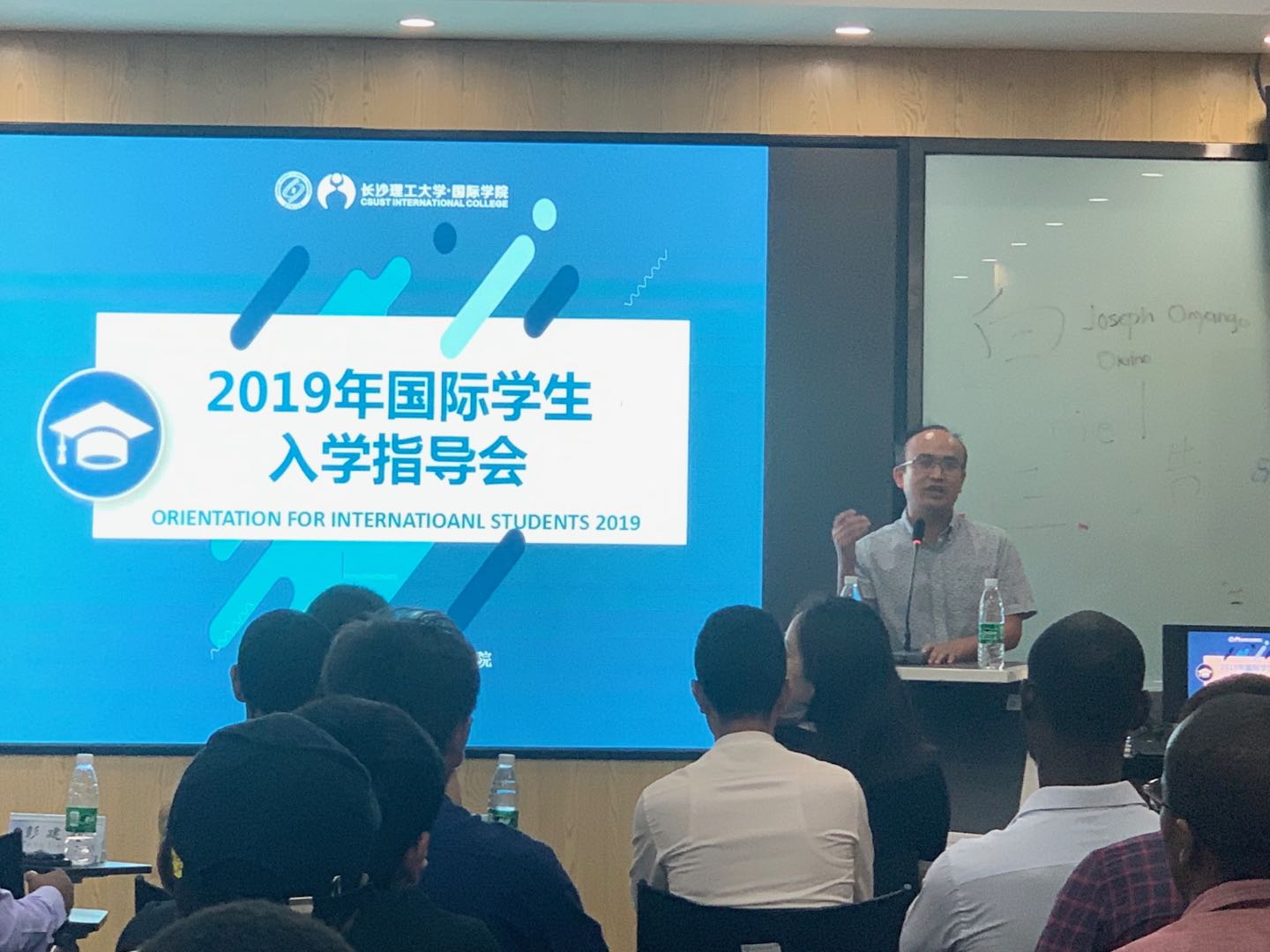 9月24日下午,国际学院为伟德2019年秋季来华留学生政府奖学金生及孔子学院奖学金生举行了入学指导会,国际学院副院长甘海鹰、土木工程学院教师彭建新副教授、化学与食品工程学院教师李彦副教授,以及国际学院国际学生工作办公室全体老师参加了指导会。会议由国际学生工作办公室负责人王荟惠主持。