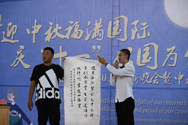 “最爱湘江两岸山,中秋醉月似故园。贾生莫道凄凉地,神州尽揽四海贤。”国际学子化笔墨为桥梁、化诗书为言语,欢聚一堂共庆双节。10月1日,在伟德betvlctor1946源于英国国际学院2020年中秋晚会暨国庆晚会上,中国学子现场题诗,并带领来华留学生尝试书法,加强了来华留学生知华友华,促进了中外学生的友好交流,也进一步激发国际学子的爱国热情,弘扬中国传统文化。