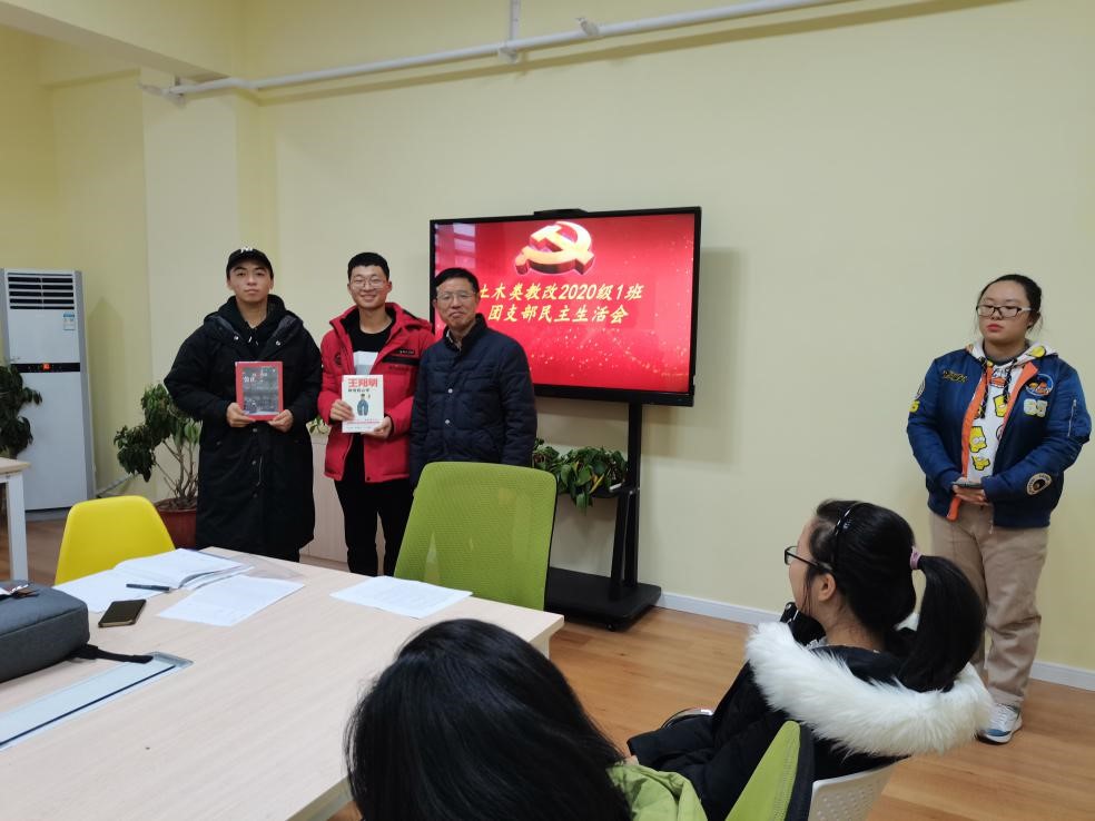 首先,班长刘心怡宣读了《日常管理和考风考纪条例》。接着,班主任李传习教授为学生代表赠书。