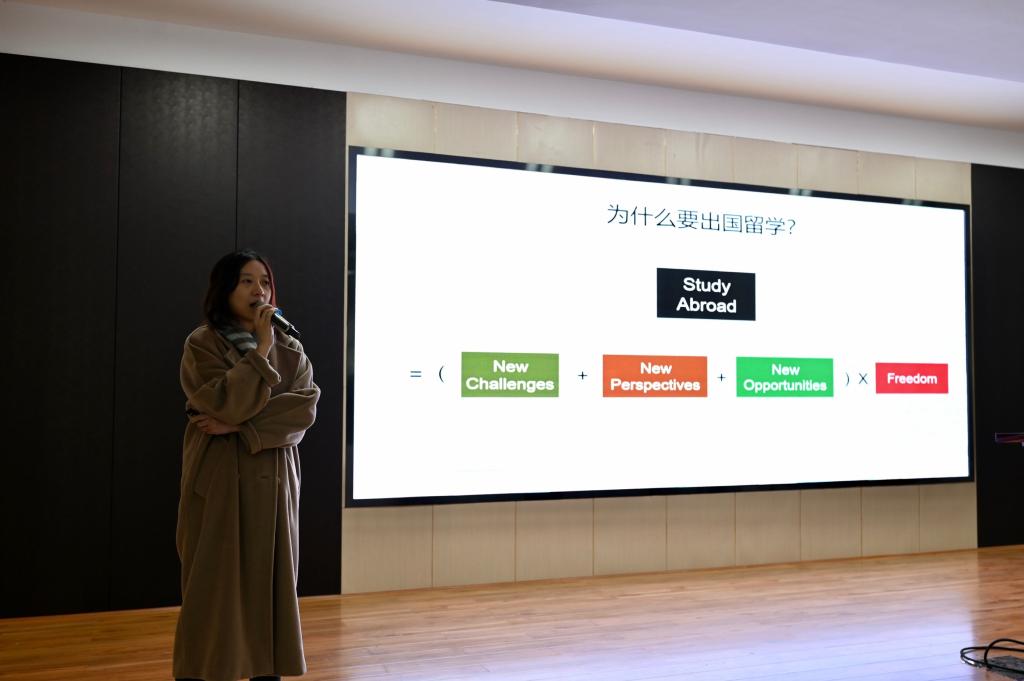 彭钰明从校际双学位项目、校际交换生项目、访学和实习项目及国家创新型人才国际合作培养项目四个方面对伟德国际项目进行了详细介绍。通过图表形式清晰地展示了各个项目院校在不同方面的具体要求,让大家对各个项目有了基本了解,并说明了疫情期间对留学生的影响。陈翘伊就以“年轻敢于远行”为主题的留学资讯分享。她首先提出了“为什么要出国留学?”的问题,并以对比的方式全面客观地分类分析了海外研究生和国内研究生的竞争力,通过分享成功案例让大家对留学项目的要求有了更加正确和具体的认识;同时介绍了疫情下不同国家的留学情况。谢梦媛就以“留学之路我该做什么?”为主题的留学资讯分享,旨在让大家明白自己该为留学做什么准备并对自己的大学生涯进行规划。她从单一申请和多国申请两方面分析了“去哪?”的问题,并给出了申请学校时的必要项和加分项意见,阐述了考研和出国的区别。