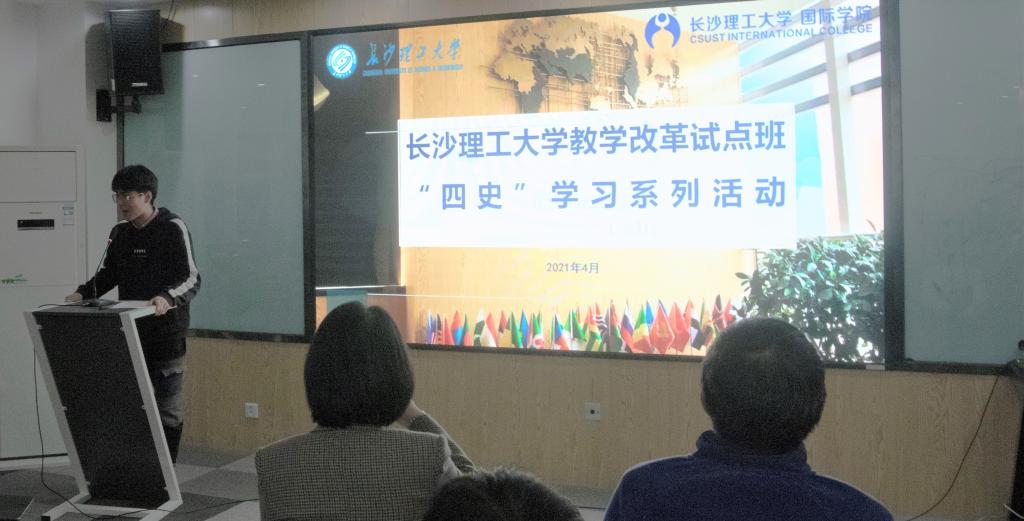 2021年4月16日晚,伟德betvlctor1946源于英国国际学院2019级和2020级教改班全体同学在新能源大楼402教室开展本学期第二场“四史”学习系列活动。校团委书记王学成、国际学院党总支副书记张锐出席。本次活动由2019级教改班团支书张家明和韩璐主持。2019级第一批入党积极分子代表以“百年瞬间、中国精神”为主题展开分享。