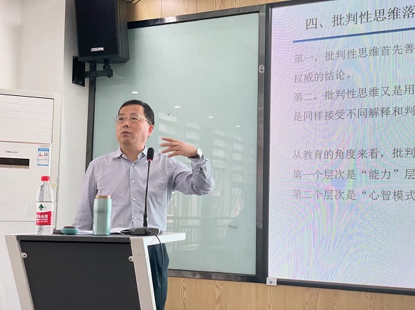 卢毅教授报告分为问题的由来、世界各国共识:批判性思维——未来核心素养的基础、我们批判性思维水平怎样、批判性思维落后的原因、拥有批判性思维的方法等五个方面,认为一般大学毕业生与一流大学毕业生的主要差距在批判性思维,一般大学与一流大学的主要差距也是如此。依据哈佛大学原校长博克关于大学生思维模式三阶段理论,一般大学迈向一流的必由之路是,大幅度提高毕业生处于第三阶段的比例;用统计学术语刻画,一般大学迈向一流,必须提高“方差”;根据创新动机的三层次理论,一般大学迈向一流,毕业生成为一流,就是要有更多的大学生成为拥有第三类动机的人。卢毅教授介绍了国内外一流大学积极开设批判性思维课程、李培根院士、钱颖一教授等高度重视批判性思维,推动批判性思维课程进入大学课堂的情况,并从问基础性问题、对基本假设进行质疑、注意心理过程等七个方面阐述了培养自己批判性思维的方法。