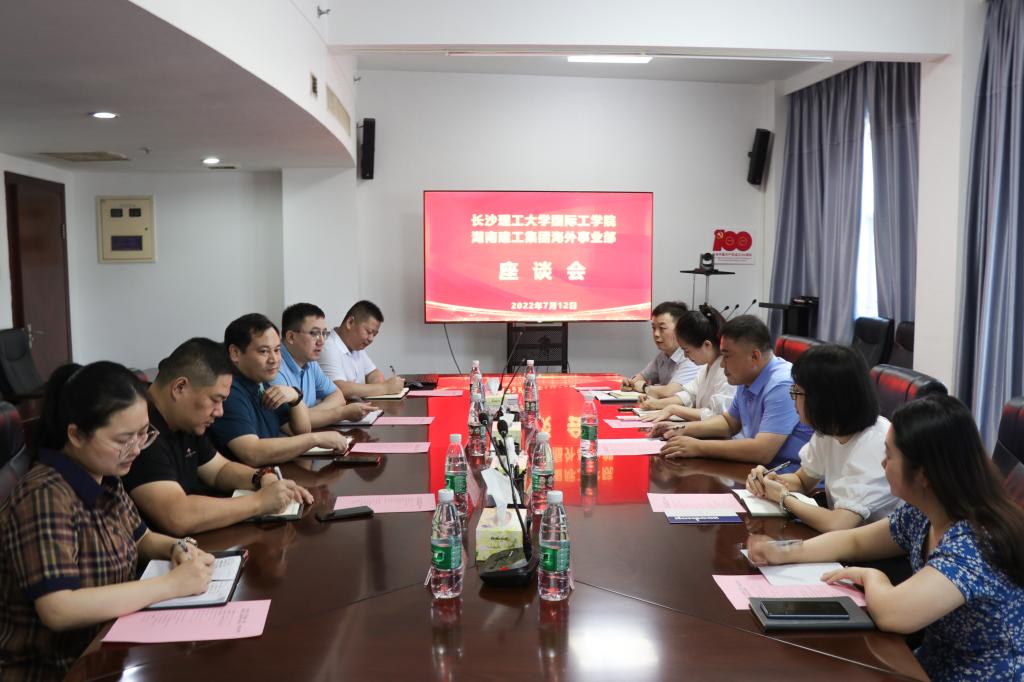 座谈会上,张旭辉介绍了湖南建工集团海外事业部的基本情况,并以湖南建工集团十大品牌故事的形式介绍了企业不断超越、勇创一流的历史的企业文化。乔法光介绍了国际工学院国际学生、中外合作办学项目、托管拔尖创新人才班、语言类和涉外类专业培训的相关情况。