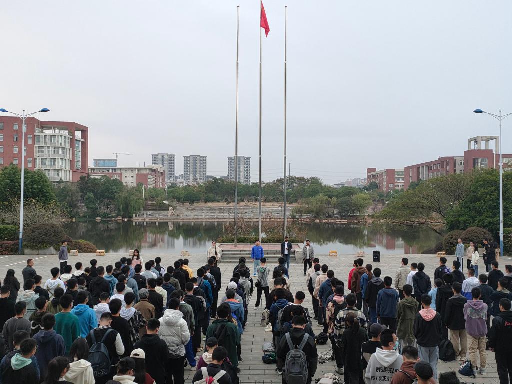 11月21日,国际工学院在云塘校区图书馆前坪隆重举行升旗仪式。国际工学院党总支副书记兼副院长乔法光、学工办全体辅导员、2022级各专业部分学生以及十月诗会朗诵成员参加。