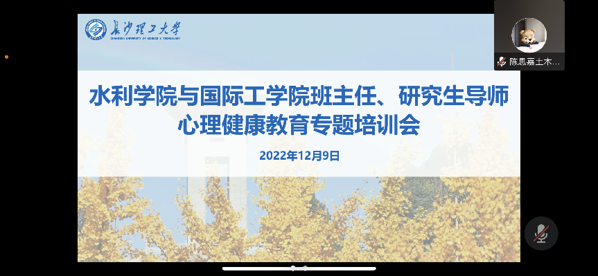为帮助教师提升心理健康知识水平,以便能敏感捕捉和解决学生的心理问题,更好地塑造学生健康心理,12月9日,国际工学院与水利学院共同召开了心理健康知识培训会,国际工学院和水利学院全体班主任、研究生导师共同参加本次会议,会议由朱娟娟老师主持。