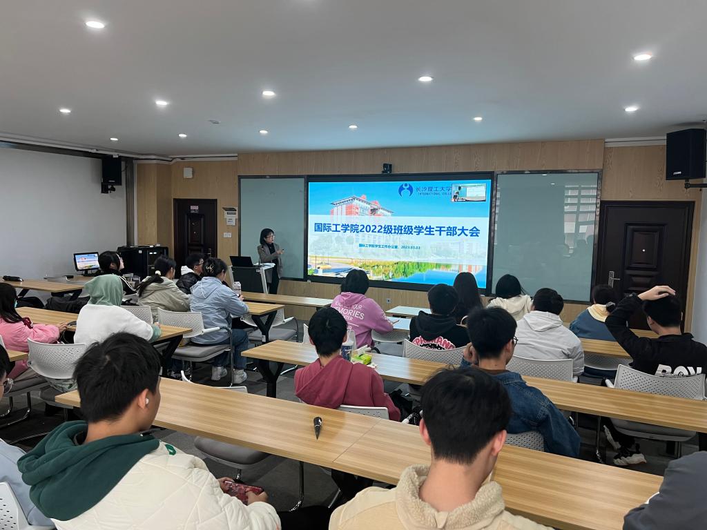 3月3日中午,国际工学院2022级新学期班级学生干部大会在云塘校区新能源大楼1栋4楼会议室召开。学院党总支副书记兼副院长乔法光、2022级全体辅导员和班级学生干部参会。