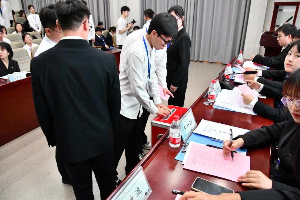 随后学代会宣布选举结果,与会人员也以热烈的掌声对他们的当选表达了诚挚的祝贺。马玉文为第七届学生会委员颁发任职证明,新任学生会委员颁发聘书和团委学生会牌。
