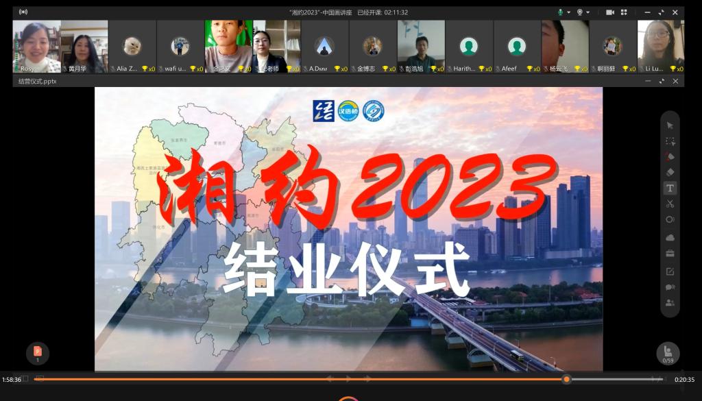 2023年3月3日,由教育部中外语言合作中心主办、伟德betvlctor1946源于英国承办的“湘约2023—领略湖湘文化,探寻美丽长沙”“汉语桥”线上团组项目圆满落幕。国际工学院分管语言教学的副院长黄月华,汉语课程组全体教师,缅甸“优”汉语语言专科学校校长王箫峰,以及来自缅甸、老挝和马来西亚的100多名学员参加了结业仪式。