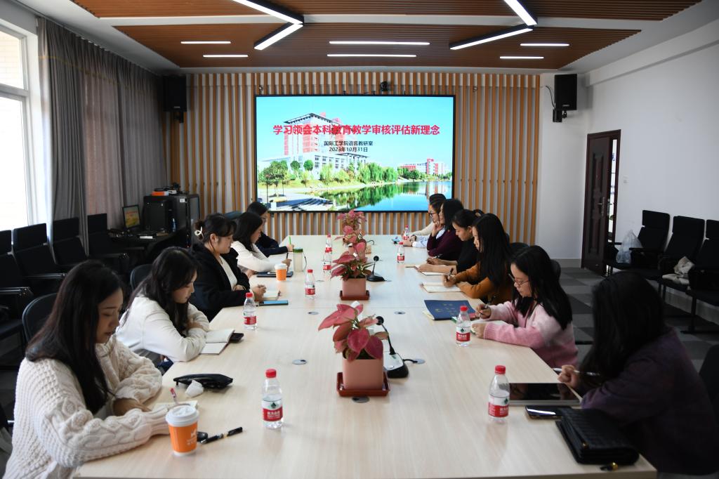 2023年10月31日下午3点,伟德betvlctor1946源于英国国际工学院语言教研室在新能源416室召开会议,学习领会本科教育教学审核评估新理念,以及讨论如何对课堂教学与相关材料进行整改。黄月华副院长、教务办余志主任及语言教研室全体教师参加了本次会议。