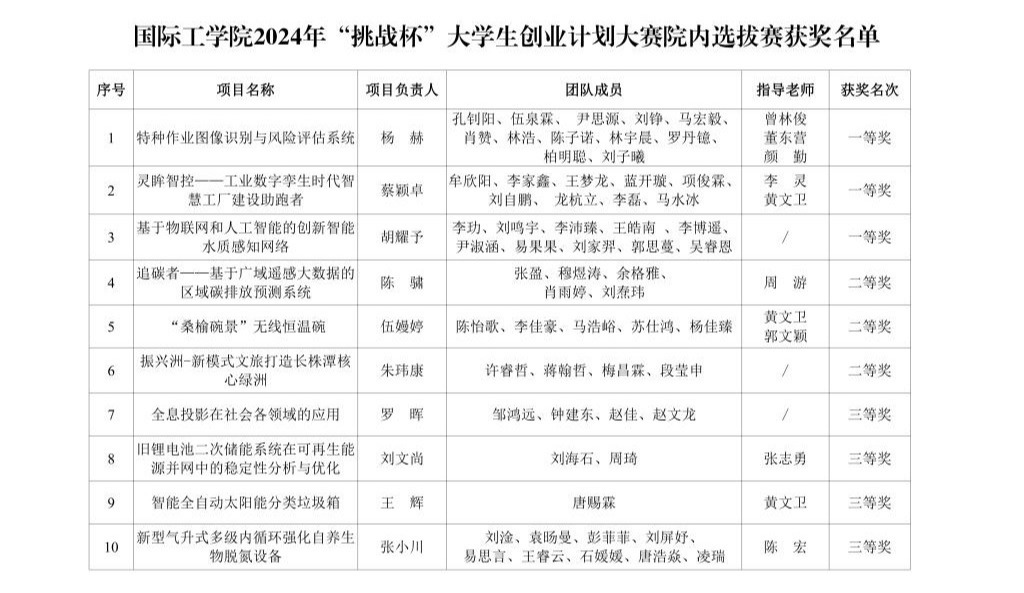 国际工学院于2024年3月12日举办“挑战杯”大学生创业计划大赛院内选拔,经过评委认真评审、讨论,现将比赛结果进行公示。公示时间为2024年3月13-15日。如对公示结果有异议,可实名向学习与发展中心反映。