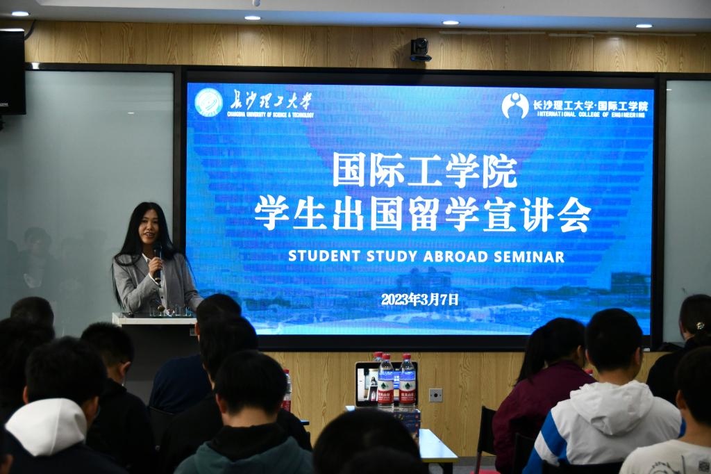 为引导学生正确认识出国留学和国际交流,拓宽我院学生升学渠道,促进学生高质量发展,3月7号下午,国际工学院组织举办学生出国留学宣讲会。国际工学院副院长黄月华,学习与发展中心黄文卫、郭文颖老师以及中外合作办学项目电气工程及其自动化专业2020级学生参会,湖南新东方前途出国咨询有限公司代表孟佳受邀出席。活动通过腾讯会议在线同步直播。
