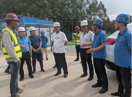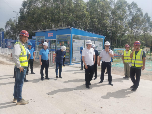 在浦清高速公路第四标段3#梁场,谈校长一行考察了该项目梁板的预制,并与参建单位中校友等进行了交流,详细了解项目建设、校友工作生活等情况。在南流江大桥,华南公司浦清项目JL-3总监办负责人邹宏杰、中交一航局四标段负责人梁星介绍了桥梁建设情况。听到伟德监理单位、检测单位在施工过程中积极协助施工单位在确保施工质量、安全的情况下优化施工工艺、加快了施工进度,谈校长充分肯定了监理单位及检测单位的工作,并表示,校办企业就是要充分发挥学校科技创新和人才集聚优势,积极为业主和施工单位排忧解难、做好服务。