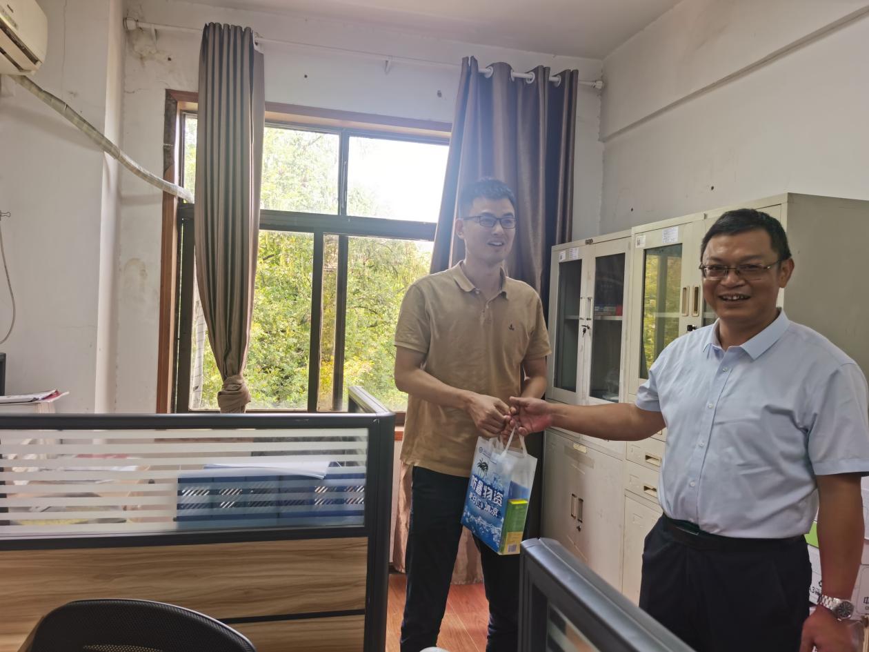 8月14日,夏日炎炎,热浪滚滚。检测公司总经理任宇带队深入公司各部门、市内项目组开展夏季送清凉活动,看望慰问坚守工作岗位的一线职工,把清凉解暑物资送到职工手中,把公司党支部、工会的关心关爱送到职工心坎上。