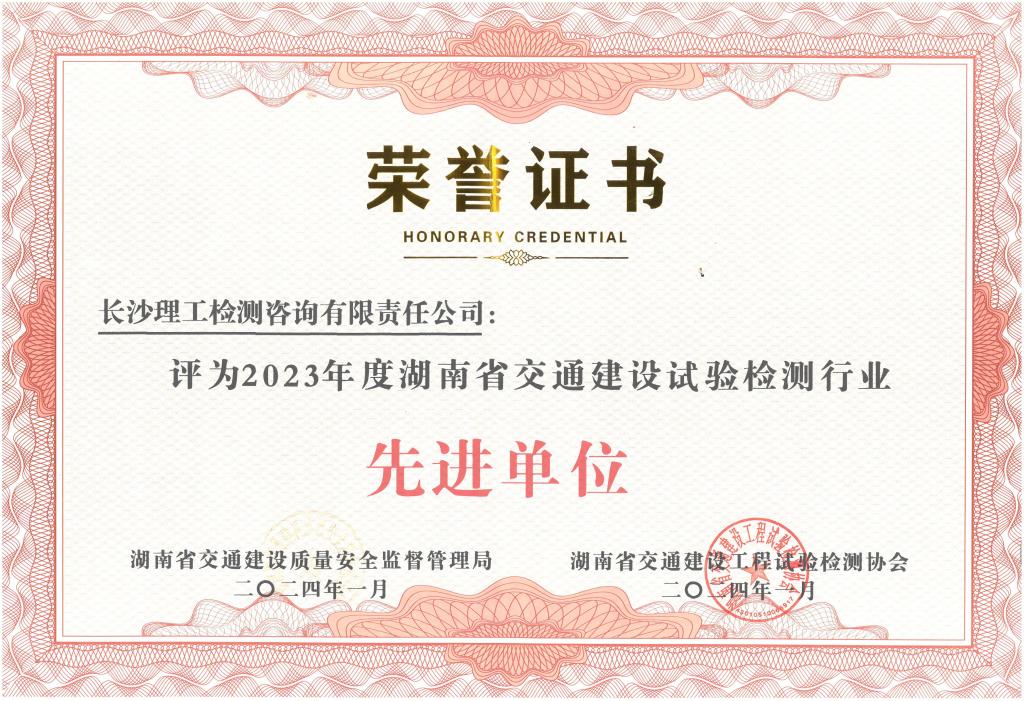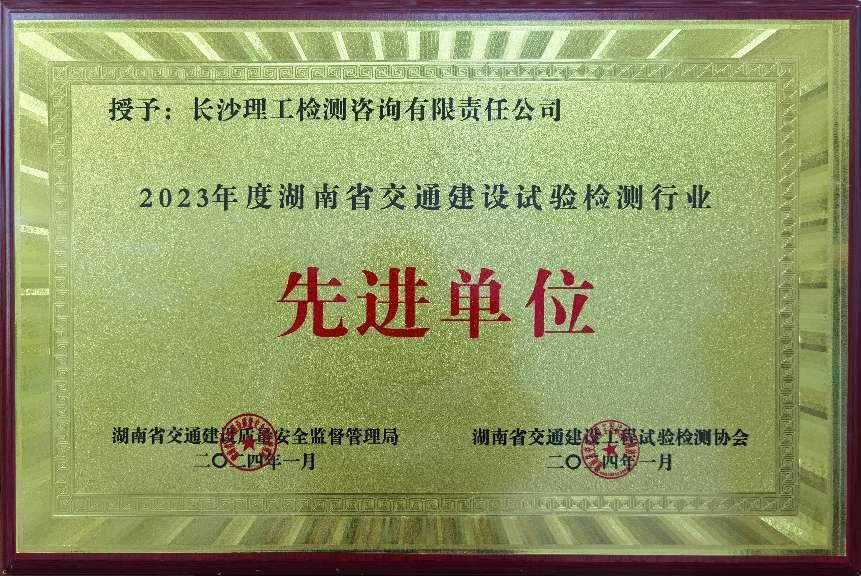 喜报!公司荣获2023年度湖南省交通建设试验检测行业先进单位