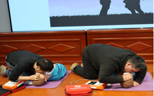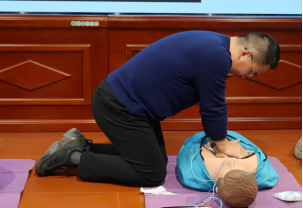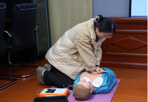 培训以理论授课、动作示范、现场实操等形式展开。首先,罗医生详细讲解了气道异物梗阻解除、心肺复苏、自动体外除颤仪的使用等实用技能,使大家了解了在日常工作、生活中遇到突发意外如何进行科学自救和施救。随后,罗医生通过演示教学、现场观摩、互动实操等方式,现场讲授和演示了胸外按压、人工呼吸等心肺复苏急救技能,并现场指导参训人员进行实操练习。参训人员仔细聆听、认真操作,现场学习气氛浓厚,反响热烈。