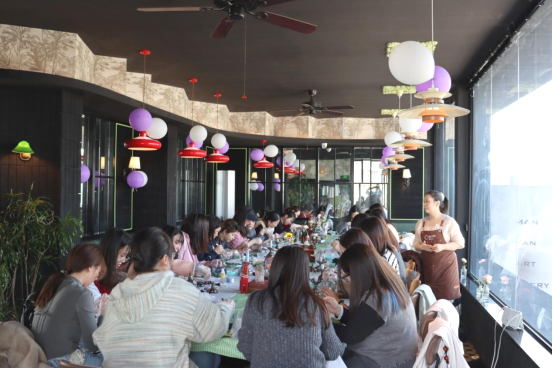 精致午餐、短暂小憩后便开始了“土耳其琉璃灯”制作。在手工老师的详细讲解和指导下,大家的灵感也随之迸发,女神们用自己灵巧的双手,挑选喜欢的彩色琉璃小砖,通过精心设计、拼贴、上胶等工序,为玻璃灯罩附上了土耳其式浪漫色彩,巧妙地将时尚、艺术、趣味等众多元素融合在一起,制作出一盏盏精美而富有特色的琉璃灯。随后,大家围桌而坐,享受静谧而温馨的下午茶,在明媚的阳光下、甜点的香气中开怀畅聊、闲话趣事;正所谓寻常风月,等闲笑谈,称意即相宜。