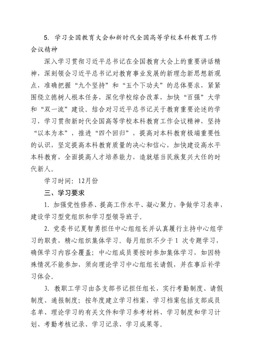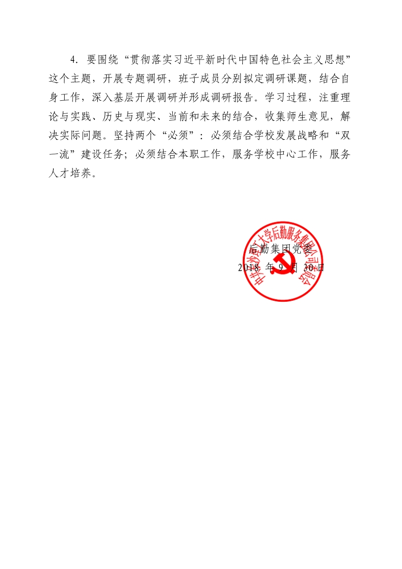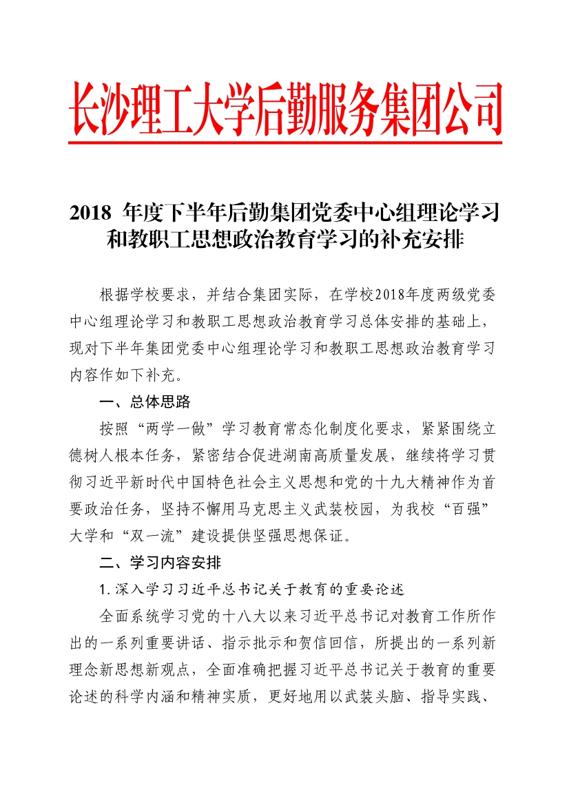2018 年度下半年后勤集团党委中心组理论学习和教职工思想政治教育学习的补充安排