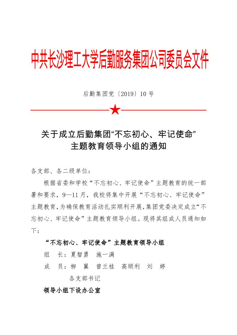 关于成立后勤集团“不忘初心、牢记使命”主题教育领导小组的通知