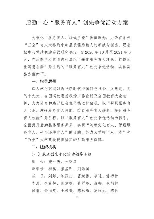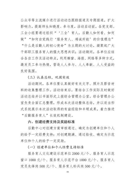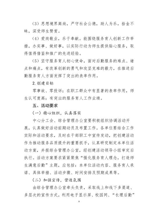 关于印发《后勤中心“服务育人”创先争优活动方案》的通知