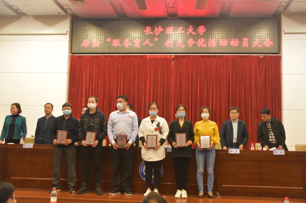 邹宏如作讲话。他代表学校党委、行政对后勤中心全体干部职工长期立足本职岗位勇于奉献、担当作为,以实际行动有力地支持了学校各项事业的发展表示感谢。他指出,“服务育人”创新争优活动的开展,是一次非常有创意、非常有意义的尝试。他希望后勤干部职工提高思想认识,深刻领会活动开展的重要意义,自觉投身到活动中来。通过加强党建引领,文化凝心聚力,后勤干部职工群策群力,切实增强主动性、积极性,真正打造一批优秀服务平台、工作先锋和平凡英雄;作为学校的一员,后勤干部职工要把对学校立德树人核心使命的认同摆在第一位,增强自豪感、荣誉感、责任感,通过优质的服务给学生成长成才以潜移默化的正向激励,切实践行好服务育人初心使命;大力深化后勤改革创新,促进管理服务科学化、规范化、精细化,通过提高质量标准、优化服务程序、创新服务项目、改善服务形象、提升服务品质,让师生享受到“热情、周到、方便、实惠”的贴心服务,赢得师生对后勤服务工作的理解、信任与支持,在学校“双一流”和“百强”大学建设中彰显后勤人的奉献与担当。